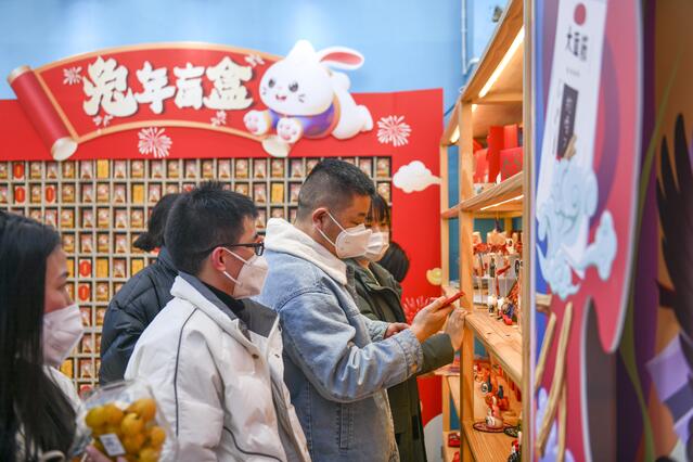 在漯河禮物展館內(nèi),兔年盲盒板塊和以兔為主題的掛歷、冰箱貼、手機(jī)掛件、小擺件等新年系列產(chǎn)品顯得格外喜慶。“由可愛的小兔子衍生的文創(chuàng)產(chǎn)品,更容易打動消費(fèi)者。”該展臺負(fù)責(zé)人說。