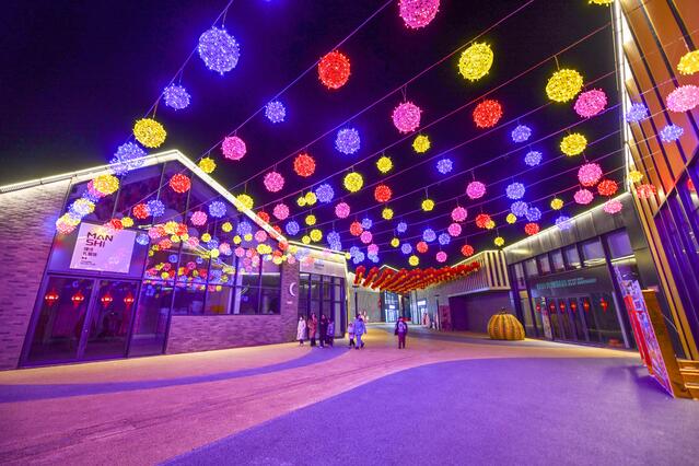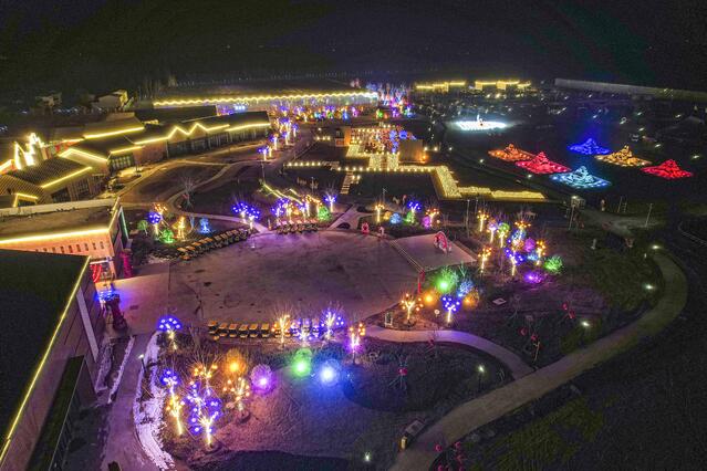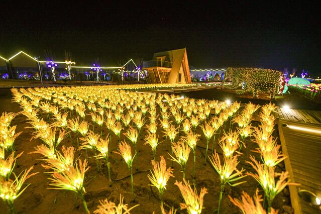 隨著夜幕降臨,園區(qū)內(nèi)開啟了夜景燈光秀,到處燈光璀璨、流光溢彩,處處洋溢著歡樂、喜慶的節(jié)日氣氛,呈現(xiàn)出一番別樣的美感,令人流連忘返。采訪中,記者看到進(jìn)入園區(qū)的游客不時拍照、留念。“不管是環(huán)境還是設(shè)施都不錯,孩子們玩得很開心,不愿意走。”正在兔子造型展板前給孩子拍照的邢貝貝說,她家在臨潁縣皇帝廟鄉(xiāng)商橋村,聽說園區(qū)即將開門迎客,她迫不及待地前來游玩。春節(jié)期間,她準(zhǔn)備約著親朋,帶著孩子們再來玩。