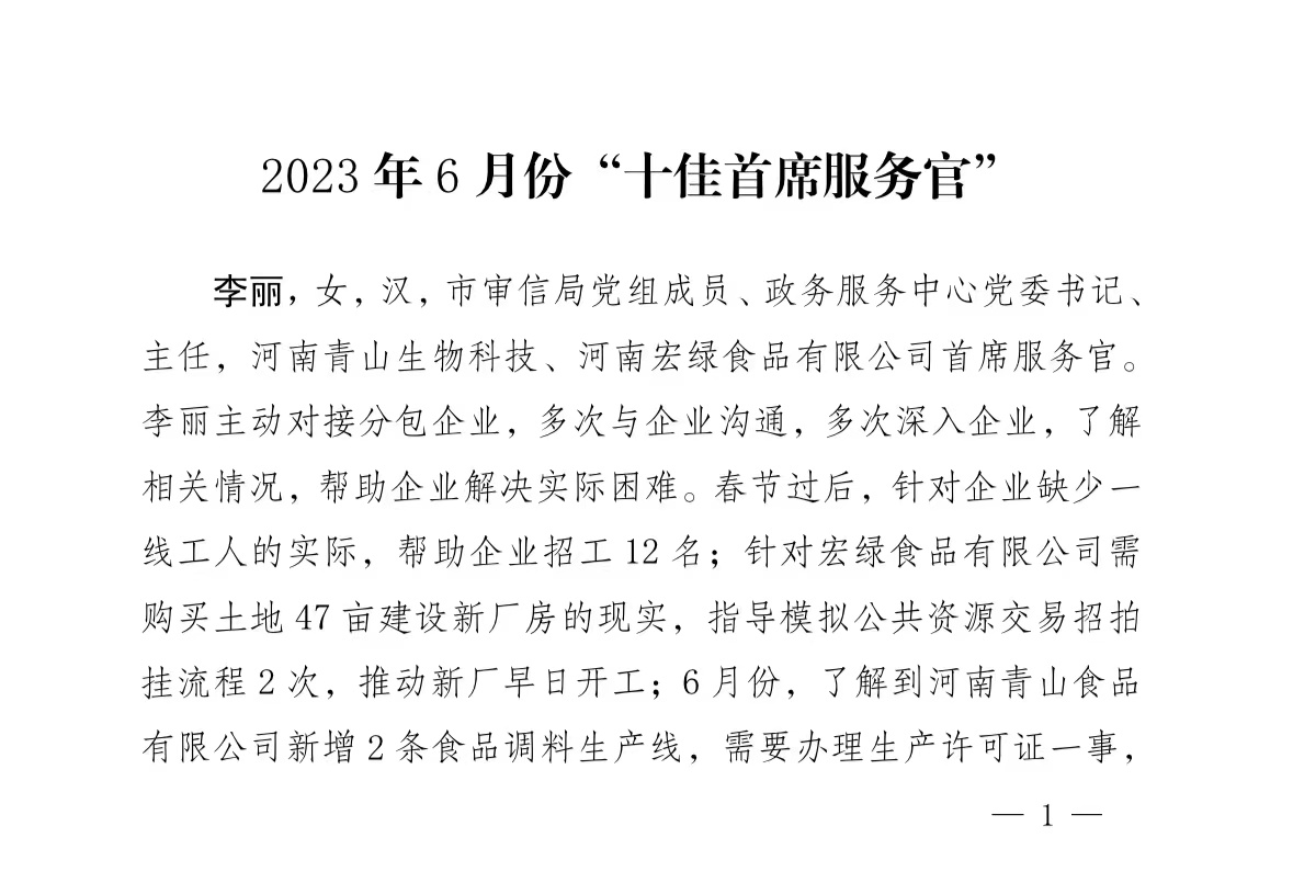 河南省“萬人助萬企” 活動 漯河市2023年6月份“十佳首席服務(wù)官”