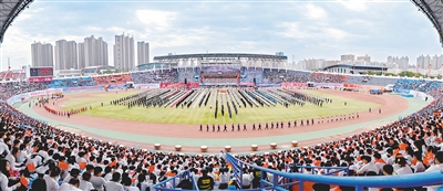 10月17日,市第九屆運(yùn)動會、第七屆職工運(yùn)動會、市直機(jī)關(guān)運(yùn)動會暨全民健身大會在市體育中心隆重開幕。記者 王曉東 攝