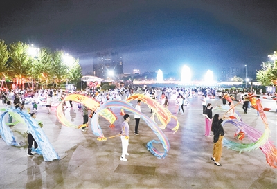 “明月幾時有?把酒問青天。不知天上宮闕,今夕是何年……”9月16日晚,在紅楓廣場東側(cè)的舞臺上,一群小朋友身穿傳統(tǒng)服飾,手持書卷,深情朗誦蘇軾的《水調(diào)歌頭·明月幾時有》。當(dāng)晚的沙澧河風(fēng)光帶璀璨奪目,正在進行的秋燈會吸引了數(shù)萬名游客。