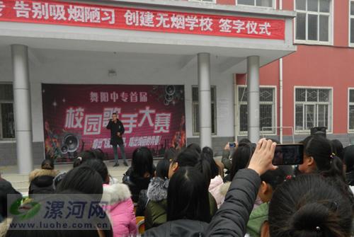 唱出飛揚(yáng)的激情,唱出絢麗的青春,12月24日下午,在綜合樓前北操場(chǎng),舞陽(yáng)中專(zhuān)全體學(xué)生、評(píng)委、校領(lǐng)導(dǎo)濟(jì)濟(jì)一堂,舞陽(yáng)中專(zhuān)首屆校園歌手大賽決賽拉開(kāi)了帷幕。