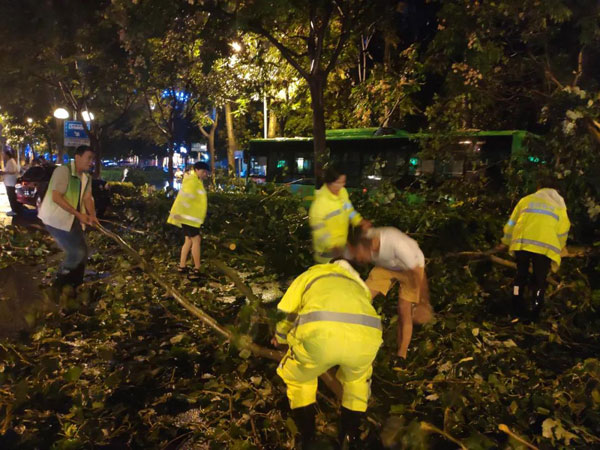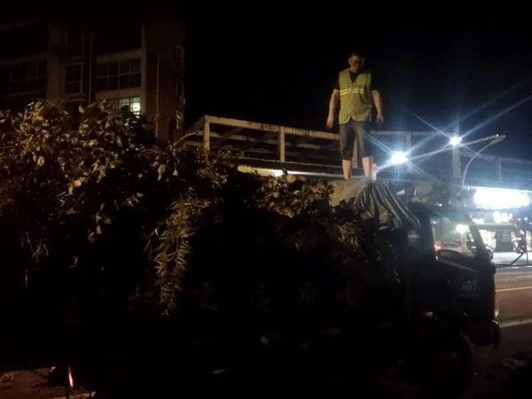 又是一個不眠夜,園林搶險硬核力量,彰顯部門責(zé)任擔(dān)當。截至8月19日早上5點多,共搶險倒伏樹木120余株,大型斷枝360余處,小型斷枝800余處,出動車輛60余臺次,出動人員200余人次。
