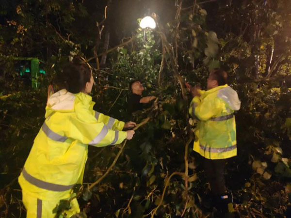 8月18日傍晚,風(fēng)雨驟起,雖然已是下班時間,但園林中心燈火通明,所有人員時刻待命,隨著雨情增大,市園林綠化養(yǎng)護中心立即啟動防汛搶險應(yīng)急預(yù)案,周密安排部署,全員參與防汛搶險。