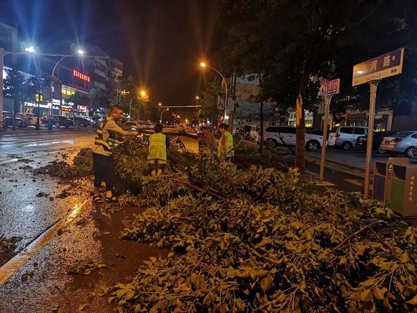 經(jīng)過一夜奮戰(zhàn),影響交通的倒伏樹木已基本清理完畢,道路恢復(fù)暢通,斷枝清運、隱患排查仍在緊張進行中。