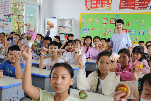 第二部分是“濃情相伴、愛在中秋”中秋節(jié)分享會(huì)活動(dòng)。同學(xué)們朗誦著歌頌中秋節(jié)的古詩(shī)、唱著中秋節(jié)的歌曲。伴隨著“月餅圓圓甜又香……”的歌聲,分享會(huì)開始啦,瞧!每個(gè)孩子的臉上都綻放著開心的笑容,孩子們將帶來(lái)的月餅、零食整齊地?cái)[放在餐盤里,相互觀賞著,接著紛紛介紹:“我的月餅是圓形的,是草莓味的。”“我的月餅是正方形的,是豆沙味道的。”“我的蘋果可甜了。”“我還帶了火腿腸……”通過(guò)小組合作,孩子們把愛心家長(zhǎng)自愿提供的月餅,獻(xiàn)給敬愛的老師、親愛的同學(xué)們!同學(xué)們你喂我一口,我吃你一塊兒,開心極了!孩子們分享著月餅,更分享著快樂(lè)……千言萬(wàn)語(yǔ),道不盡孩子們的聲聲祝福,傳統(tǒng)文化,洗禮著一顆顆幼小的心靈。整個(gè)校園沉浸在濃濃節(jié)日氛圍之中?;顒?dòng)在輕松愉悅的氣氛中圓滿落下帷幕,孩子們度過(guò)一個(gè)意義非凡,情伴中秋的主題活動(dòng)日,收獲滿滿。