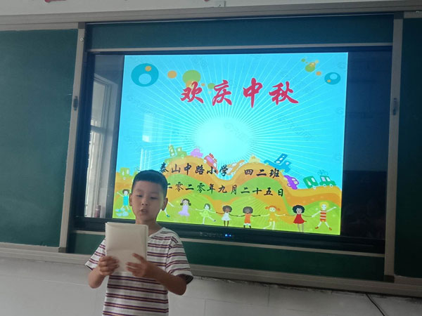班隊(duì)活動(dòng)分兩部分,第一部分是詩(shī)情畫意話中秋。同學(xué)們搜集與中秋節(jié)相關(guān)的資料,并在班內(nèi)交流,了解中秋節(jié)來(lái)歷,了解全國(guó)各地過(guò)中秋習(xí)俗,并從中解讀傳統(tǒng)節(jié)日在生活中的韻味。接著開展“中華經(jīng)典誦讀”活動(dòng)。各班緊緊圍繞中秋佳節(jié),舉行以“月到中秋分外明”為主題的詩(shī)歌朗誦比賽,并組織同學(xué)們進(jìn)行與中秋節(jié)有關(guān)的詩(shī)歌創(chuàng)作活動(dòng)。五一班一首《水調(diào)歌頭》讓孩子們感受到“中秋”夜的良辰美景,一個(gè)“月圓”已把同學(xué)們的心攏在了一起。六二班《中華少年》的朗誦比賽,各小組都憋足了勁,拔優(yōu)爭(zhēng)先,一副認(rèn)真勁十足的樣子,