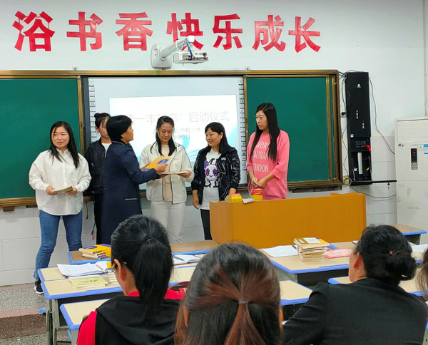 啟動儀式上,校長靳玉翠作激情洋溢動員講話:讀一本好書是教師專業(yè)發(fā)展的客觀要求和提高自身修養(yǎng)的內(nèi)在需要,通過讀書活動,教師能夠補充教育理論知識,改善自身知識結(jié)構(gòu);提升教師理論和實踐水平,將讀書所得運用于實踐,從而有效改進自己的教學行為。她希望各位教師在工作之余多讀書,在讀書之中享受學習的樂趣。