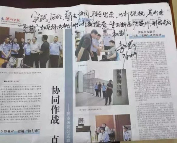 2019年8月13日,市委常委、市委秘書長李建濤專門就此作出批示,對警法協(xié)同、聯(lián)合出擊、“以打促執(zhí)”的做法表示肯定,并希望警法雙方能將合作模式不斷進行總結(jié)和提升,形成長效機制,切實解決執(zhí)行難。