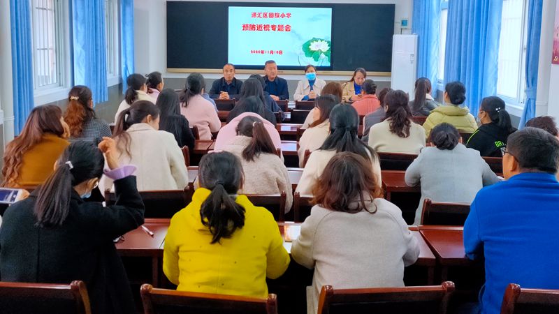 接到通知,學校就利用學校大屏幕進行宣傳,11月10日,副校長劉國勤組織全體教師,開展了主題為“源匯區(qū)回族小學預(yù)防近視專題會”,給老師講解了此次活動的目的,營造了濃厚的預(yù)防近視校園氛圍。