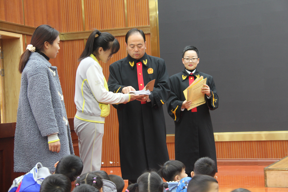 在法官叔叔和阿姨的帶領(lǐng)小朋友參觀了訴訟服務中心和審判大廳,還參觀警車車庫,警車休息的地方。并向大家介紹了法院的機構(gòu)設(shè)置和建筑布局、法庭人員構(gòu)成以及各項工作的開展情況。通過講解員的講解,孩子們了解到了開庭的相關(guān)流程,也切身感受庭審的嚴肅和神圣。