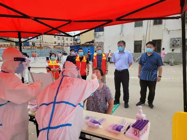 源匯區(qū)建立分包聯(lián)系制度,全區(qū)縣級領(lǐng)導(dǎo)干部分包鄉(xiāng)鎮(zhèn)、街道辦,深入檢測點(diǎn)一線指導(dǎo)督導(dǎo),區(qū)直各單位黨員干部下沉各檢測采集點(diǎn)開展志愿服務(wù),鄉(xiāng)鎮(zhèn)、街道、社區(qū)(村)干部精心組織,落實(shí)責(zé)任,廣大醫(yī)護(hù)人員聞令而動,領(lǐng)命出征,全區(qū)出臺《關(guān)于在疫情防控中進(jìn)一步發(fā)揮基層黨組織戰(zhàn)斗堡壘作用和廣大黨員先鋒模范作用的通知》,廣大干群斗志昂揚(yáng),全區(qū)各級黨員干部凝心聚力一盤棋,迅速投入這場沒有硝煙的戰(zhàn)爭。