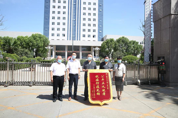 8月25日上午,順河街建西社區(qū)黨支部書記、居委會主任梁三閣、牛行街小區(qū)業(yè)委會主任時勝濤將印有“公平正義使者,抗疫防疫先鋒”的錦旗送到市法院,代表社區(qū)工作人員和社區(qū)居民對市法院在社區(qū)疫情防控工作中給予的大力支持表示感謝。