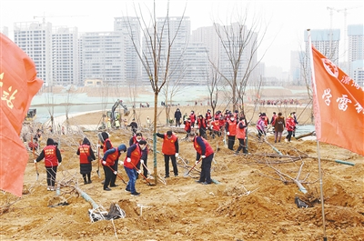 2月22日,我市開展春季義務(wù)植樹活動(dòng)。圖為沙澧河二期綜合整治項(xiàng)目基地植樹現(xiàn)場(chǎng)。