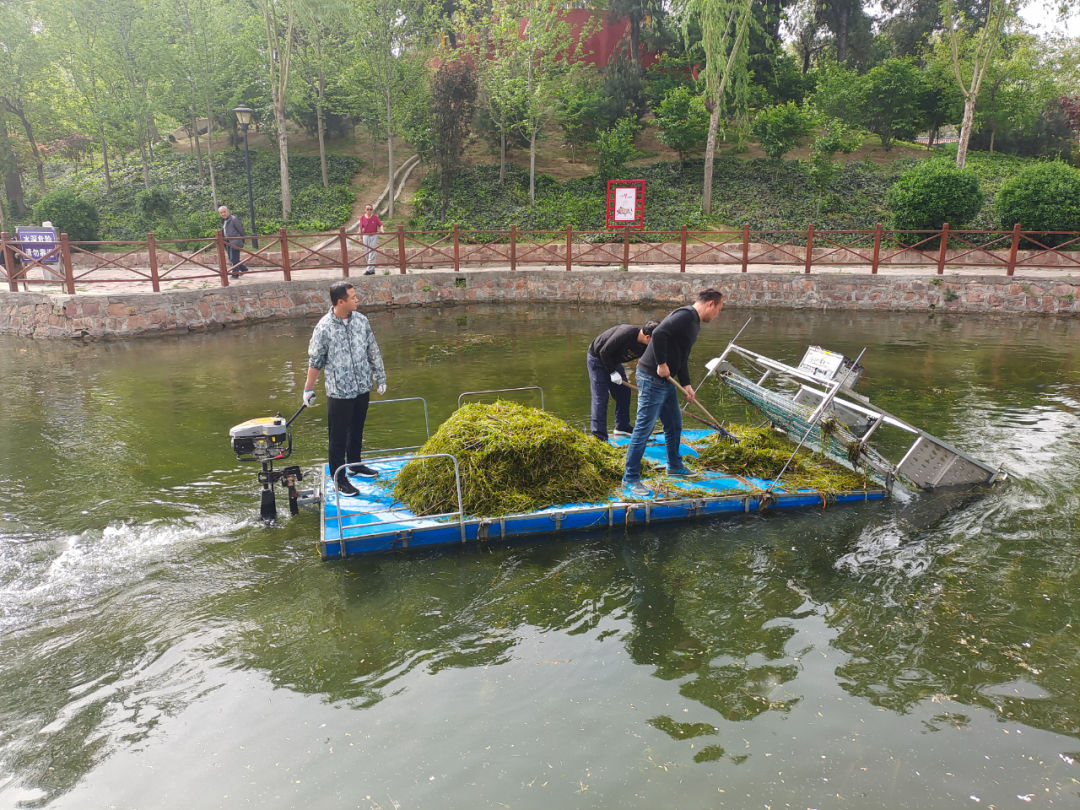 4月12 上午,為維護公園生態(tài)環(huán)境,漯河市園林綠化養(yǎng)護中心人民公園組織職工持續(xù)對人工湖水草進行集中清理。