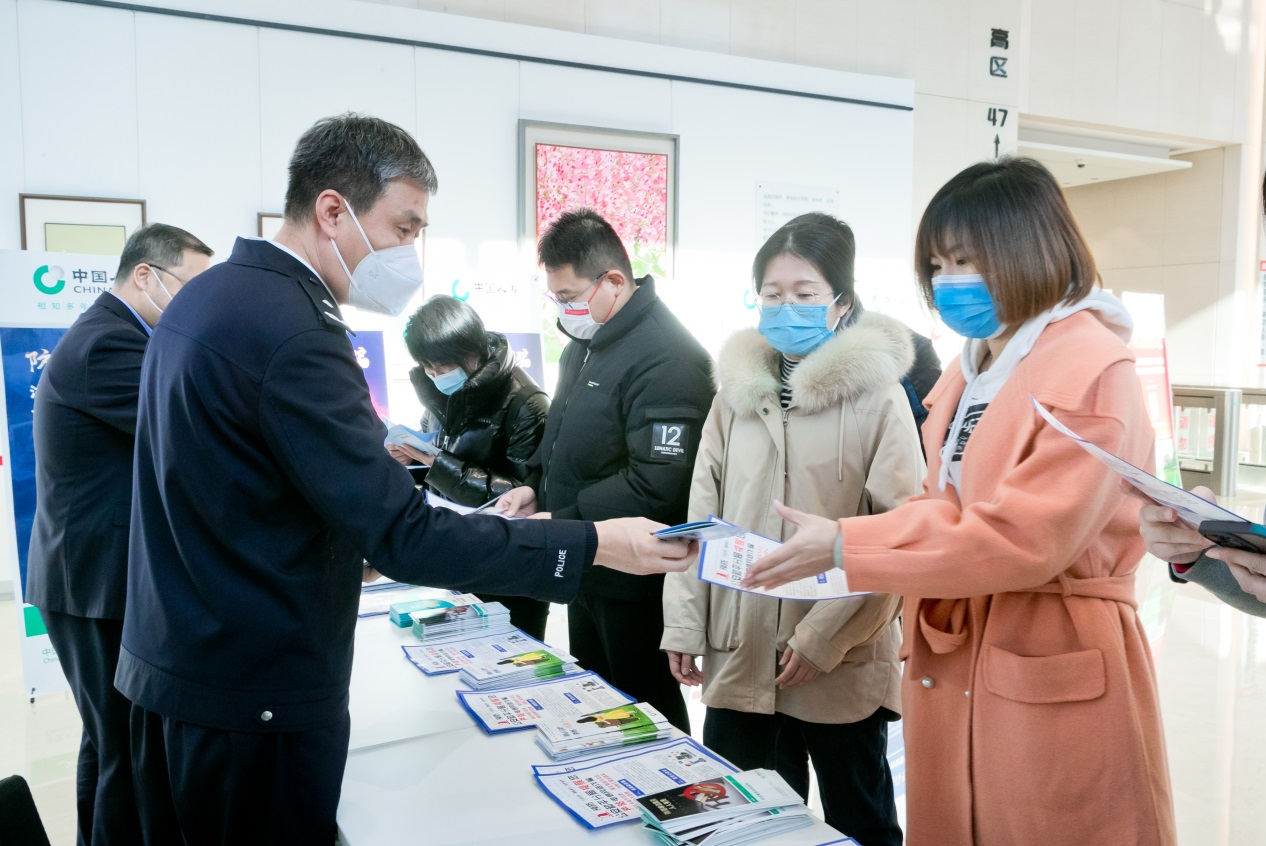 圖:向市民發(fā)放傳單宣傳防范金融風(fēng)險(xiǎn)