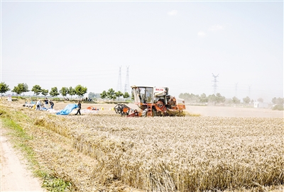 記者看到,不遠(yuǎn)處還有多臺大型收割機(jī)在一眼望不到邊的麥地里馳騁。“村干部全部都在地里忙,已經(jīng)連續(xù)幾天沒有好好休息了。”潘三偉說,村里的5臺大型收割機(jī)連夜作業(yè)提高麥?zhǔn)招?,全?000多畝小麥,目前已經(jīng)收割過半,趁著墑情較好,部分收割過的地里已經(jīng)及時播種。