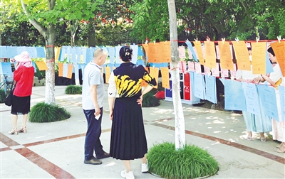 7月8日上午,記者在此處看到,彩色相親簡歷上印著200多名單身男女的年齡、身高、戶籍、收入、家庭情況、擇偶要求等信息。雖然天氣炎熱,但是很多市民特意趕來,仔細(xì)閱讀相親簡歷,看到有合適的就用手機(jī)拍下來。