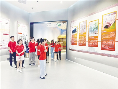 在市城市展示館講解員的帶領(lǐng)下,實踐團成員通過場景復(fù)原、實物沙盤等,了解了我市從9000年前的“賈湖文明”到今日“中華漢字文化名城”“中國食品名城”的發(fā)展變化。