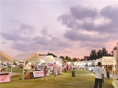 7月9日傍晚,熱鬧的紅楓廣場消夏市集。
