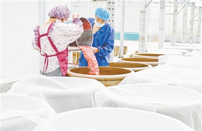 記者了解到,傳統(tǒng)醬豆的制作還需要炒熟才能食用。為了與現(xiàn)代生活接軌,免去年輕人食用時二次加工的不便,2022年,王琪與返鄉(xiāng)創(chuàng)業(yè)的趙鵬程合作,加工出易保存且便于攜帶的罐裝醬料。今年,王琪嘗試對接電商運營團隊,希望通過互聯(lián)網(wǎng)讓老五美醬菜走向全國。