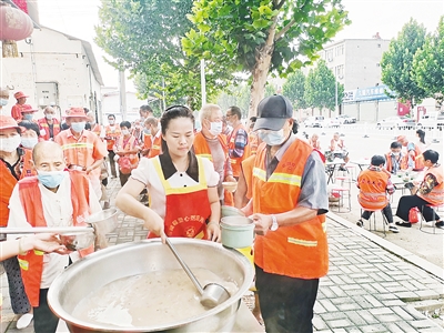 與此同時(shí),臨潁縣城潁松路上,愛心粥屋也已燈火通明,郭麗丹和其他志愿者正在為環(huán)衛(wèi)工人、孤寡老人等準(zhǔn)備早餐。