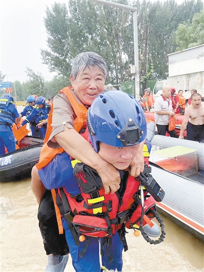 我市救援隊員在涿州市救助被困群眾。圖片由師軍帥提供