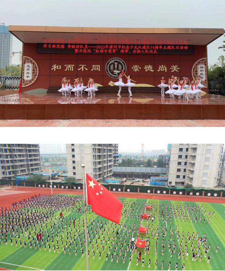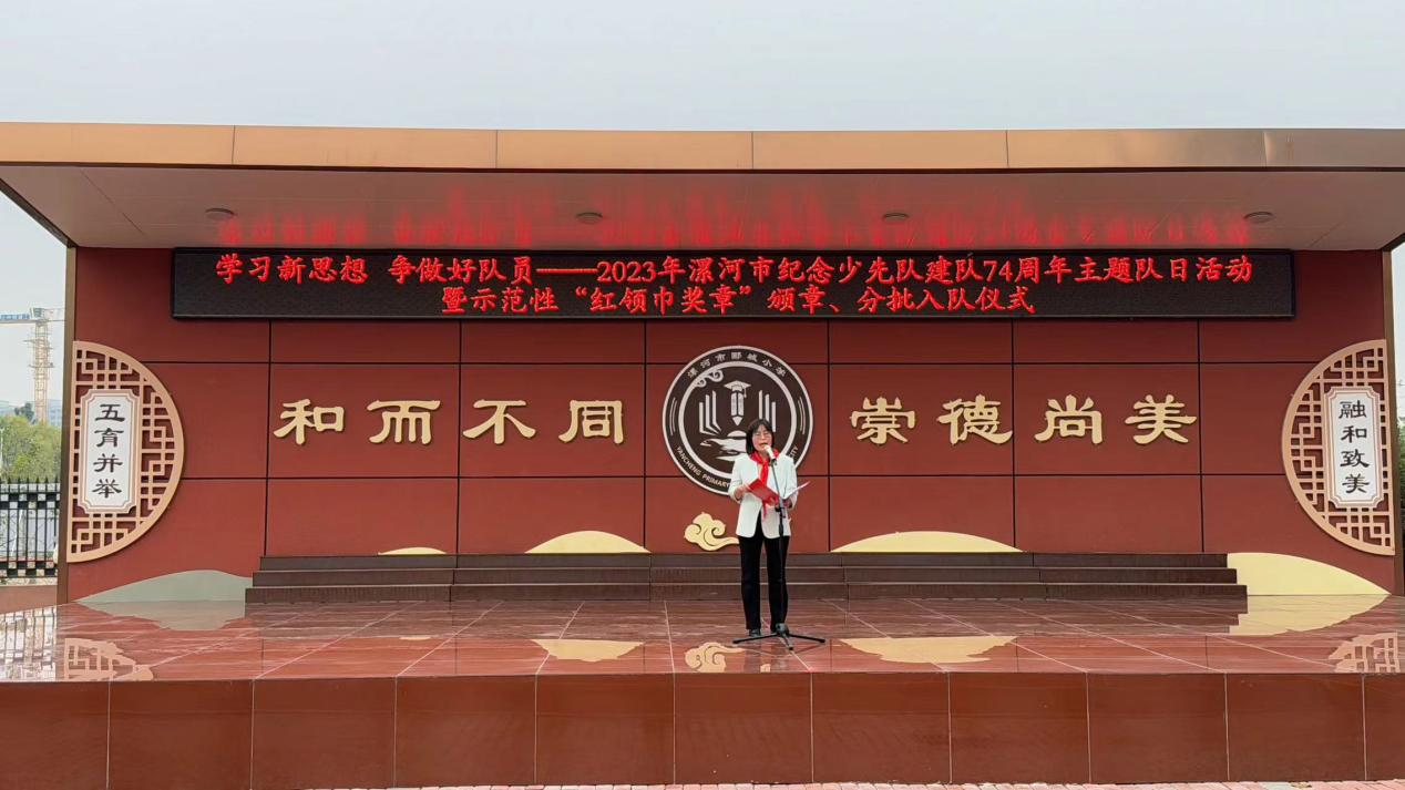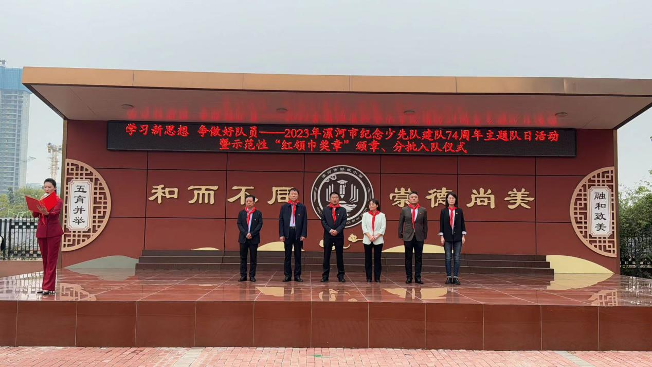 為加強(qiáng)對(duì)少年兒童的思想引領(lǐng),激發(fā)少先隊(duì)員的光榮感和組織歸屬感,示范推動(dòng)全市少先隊(duì)分批入隊(duì)和紅領(lǐng)巾爭(zhēng)章工作,10月12日上午,在第74個(gè)中國(guó)少年先鋒隊(duì)建隊(duì)日來(lái)臨之際,由共青團(tuán)漯河市委、漯河市教育局、漯河市少工委主辦,郾城小學(xué)承辦的“學(xué)習(xí)新思想 爭(zhēng)做好隊(duì)員”——2023年漯河市紀(jì)念少先隊(duì)建隊(duì)74周年主題隊(duì)日活動(dòng)暨示范性“紅領(lǐng)巾獎(jiǎng)?wù)?rdquo;頒章、分批入隊(duì)儀式在郾城小學(xué)圓滿(mǎn)舉行。