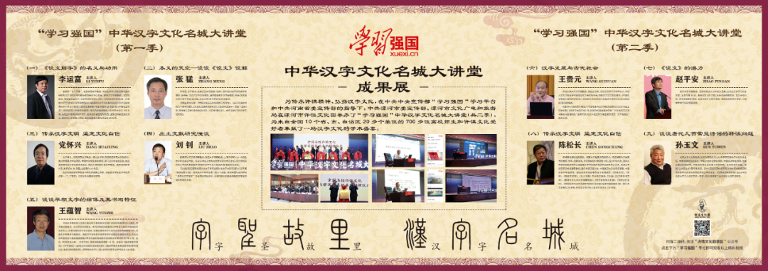 “學(xué)習(xí)強(qiáng)國”漢字文化名城大講堂創(chuàng)辦于2019年,在中宣部“學(xué)習(xí)強(qiáng)國”學(xué)習(xí)平臺(tái)和省委宣傳部的直接指導(dǎo)下,至今已舉辦4季13期,先后邀請(qǐng)清華大學(xué)趙平安教授、李守奎教授,北京大學(xué)孫玉文教授,中國人民大學(xué)王貴元教授,北京師范大學(xué)王立軍教授,復(fù)旦大學(xué)劉釗教授,吉林大學(xué)吳振武教授等13位國內(nèi)知名專家學(xué)者前來講座。同時(shí)將講座視頻制作后上傳至“學(xué)習(xí)強(qiáng)國”學(xué)習(xí)平臺(tái)“許慎與《說文解字》”專欄,目前已上傳71集,成為弘揚(yáng)許慎文化、傳承許慎精神,展示漯河形象的新窗口。