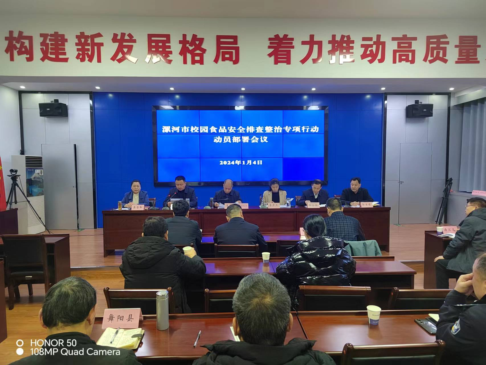 2024年1月4日,漯河市政府食安辦會同市教育局、市公安局、市衛(wèi)生健康委、市市場監(jiān)管局聯(lián)合召開全市校園食品安全排查整治專項行動動員部署會議,安排部署開展為期6個月的校園食品安全排查整治專項行動。