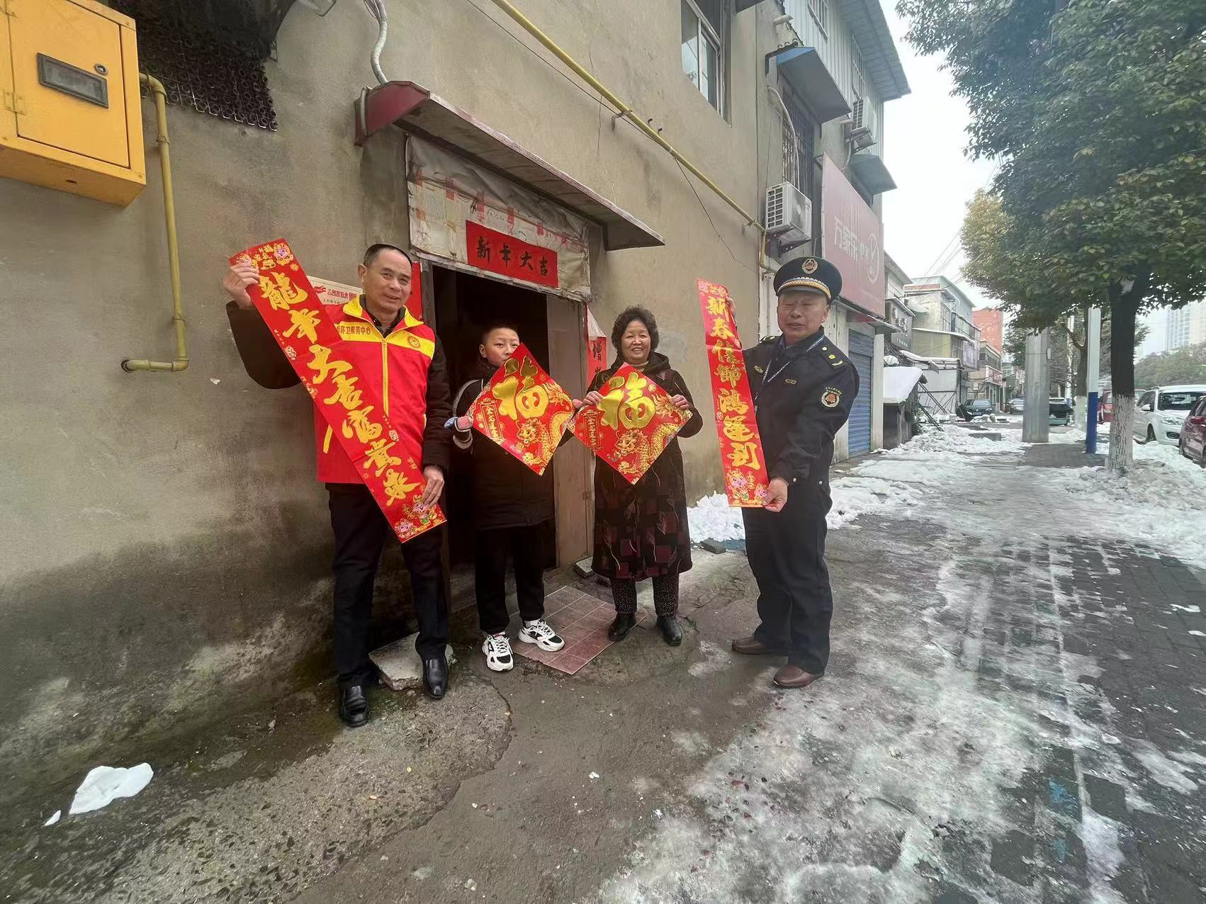 積極聯(lián)動送“敬業(yè)福”。團隊成員與所駐村、駐社區(qū)積極聯(lián)動,向鄉(xiāng)村、社區(qū)工作人員送上“敬業(yè)福”,感謝其對城管工作的支持,共同探討鄉(xiāng)村、社區(qū)對城市管理執(zhí)法工作的需求,寄語新的一年繼續(xù)加強聯(lián)動協(xié)作,助推“城管進社區(qū)”實現(xiàn)共商、共建、共治、共享的工作目標。