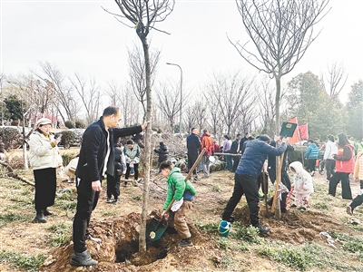 3月9日,市城市管理局園林綠化養(yǎng)護(hù)中心組織開展義務(wù)植樹活動(dòng)。 見習(xí)記者 李慧瑩 攝
