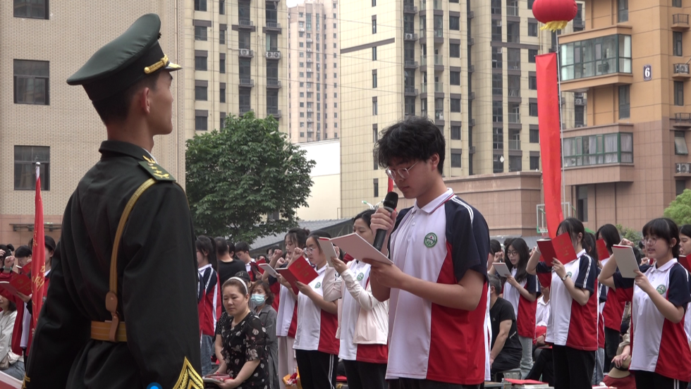 接著,全體學生手持《憲法》,面向國旗莊嚴宣誓。