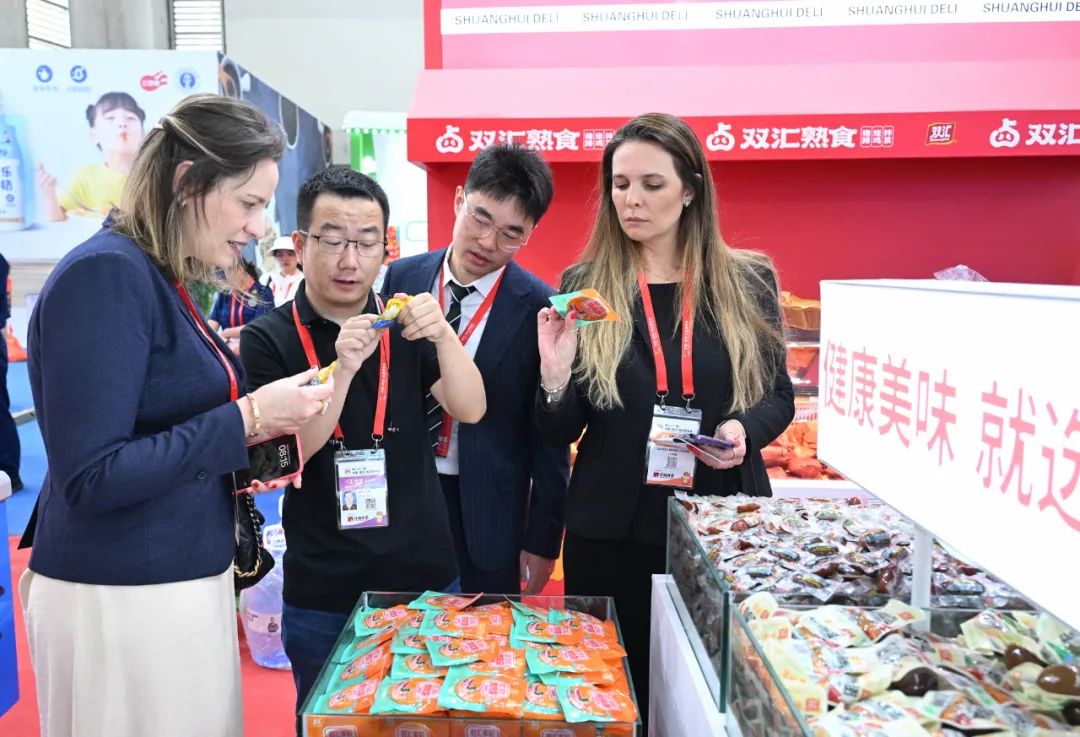 肉制品綜合展區(qū)展示了簡頌午餐肉、炫動番茄香腸、爆漿芝士腸、爆漿芝士魚餅等新品,金馬可減鹽火腿腸、輕咔能靚雞胸肉腸、辣嗎?辣、輕享雞肉腸等特色產(chǎn)品,還有泡椒豬皮、虎皮雞爪、熏烤肉腸、多彩烤肉餅等休閑零食,品種豐富、口味多樣,可以滿足不同消費需求。