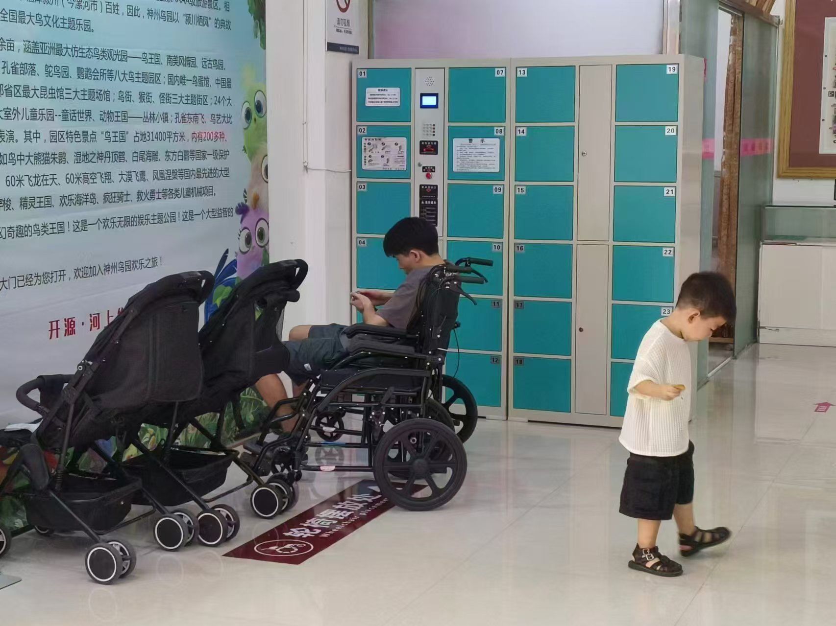 中秋節(jié)期間神州鳥園:一位游客坐輪椅玩手機(jī)很不文明。