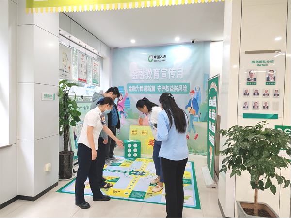 中國人壽壽險漯河分公司黃河路營業(yè)廳內(nèi)設(shè)置了全國統(tǒng)一的“金融知識便利店”,分為活動主海報、禮品區(qū)、金融機(jī)場互動版塊、“八大權(quán)益”連連看互動板塊,將金融知識融入妙趣橫生的互動游戲之中。金融機(jī)場飛行棋游戲互動版塊分為保險專機(jī)、反詐專機(jī)、反洗錢專機(jī)、反非專機(jī),客戶朋友們輪流擲骰子前進(jìn)或后退,根據(jù)點(diǎn)數(shù)對應(yīng)位置進(jìn)行做俯臥撐、背古詩、蹲起、模仿動物叫的游戲和學(xué)習(xí)金融保險知識等。“八大權(quán)益”連連看活動讓客戶朋友們?nèi)娴亓私庀M(fèi)者八大權(quán)益等知識,大家在歡聲笑語中輕松掌握金融防騙、反洗錢、防范非法集資、金融保險知識等。公司對參與互動游戲的客戶朋友們送上了中國人壽專屬的小禮品,讓客戶在參與中收獲知識與喜悅。同時,寓教于樂的游戲項目有效提升了金融知識普及的覆蓋面與接受度,彰顯了中國人壽服務(wù)社會的責(zé)任擔(dān)當(dāng)。