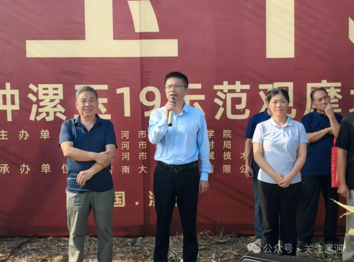 當(dāng)天上午,參會(huì)人員來(lái)到漯河市農(nóng)科院郾城區(qū)西大坡玉米單產(chǎn)提升漯玉19百畝示范方進(jìn)行實(shí)地觀摩,市農(nóng)業(yè)科學(xué)院黨委書(shū)記巴磊、市農(nóng)業(yè)農(nóng)村局一級(jí)調(diào)研員閆長(zhǎng)海出席會(huì)議并致歡迎詞。