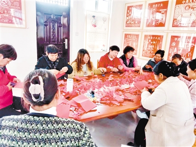 課堂上,學員們全神貫注、小心翼翼地剪著。不一會兒,精美的剪紙作品便在他們手中誕生。不同形狀的蓮花燈、翩翩起舞的蝴蝶……經過學員們的剪裁,普通的紅紙變成了生動的剪紙作品。“我從最簡單的對邊折剪開始學習,現(xiàn)在已經能剪花、鳥、蟲、魚等圖案了。”剪紙愛好者馬新霞說。