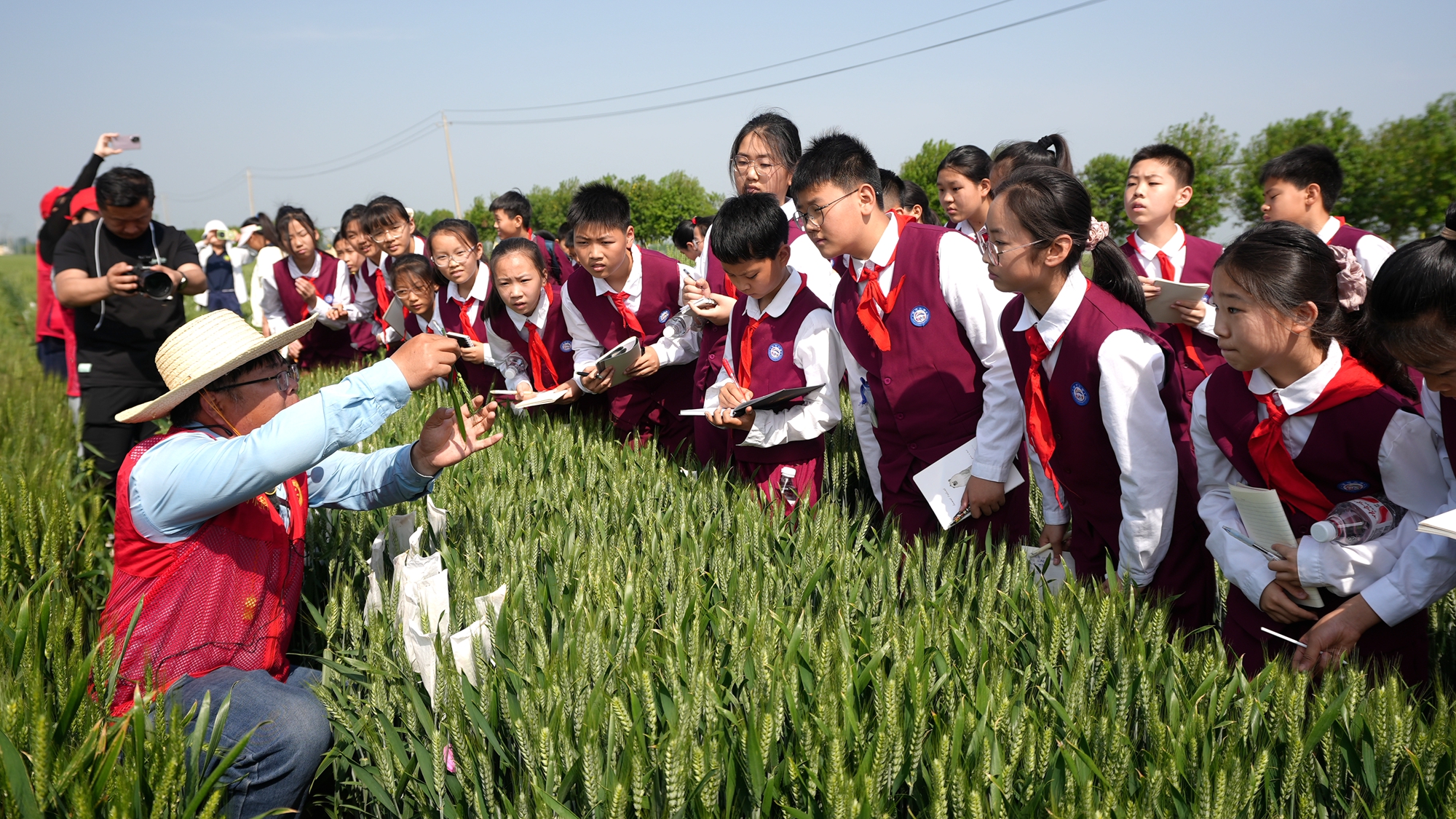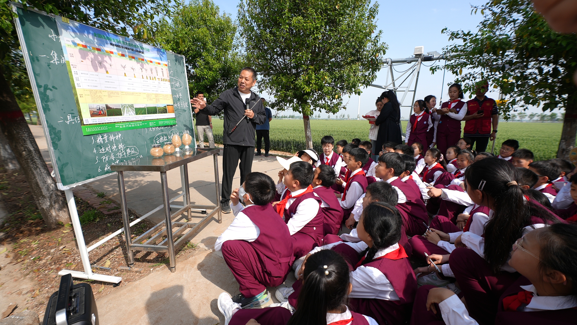 儀式環(huán)節(jié)結(jié)束后,專家為同學(xué)們帶來了精彩講解,深入淺出地科普了小麥的一生、小麥的雜交及品種選育、人工影響天氣作業(yè)、病蟲害物聯(lián)網(wǎng)等知識,揭開現(xiàn)代農(nóng)業(yè)神秘面紗。同學(xué)們認(rèn)真聆聽,不時記錄下重點內(nèi)容。