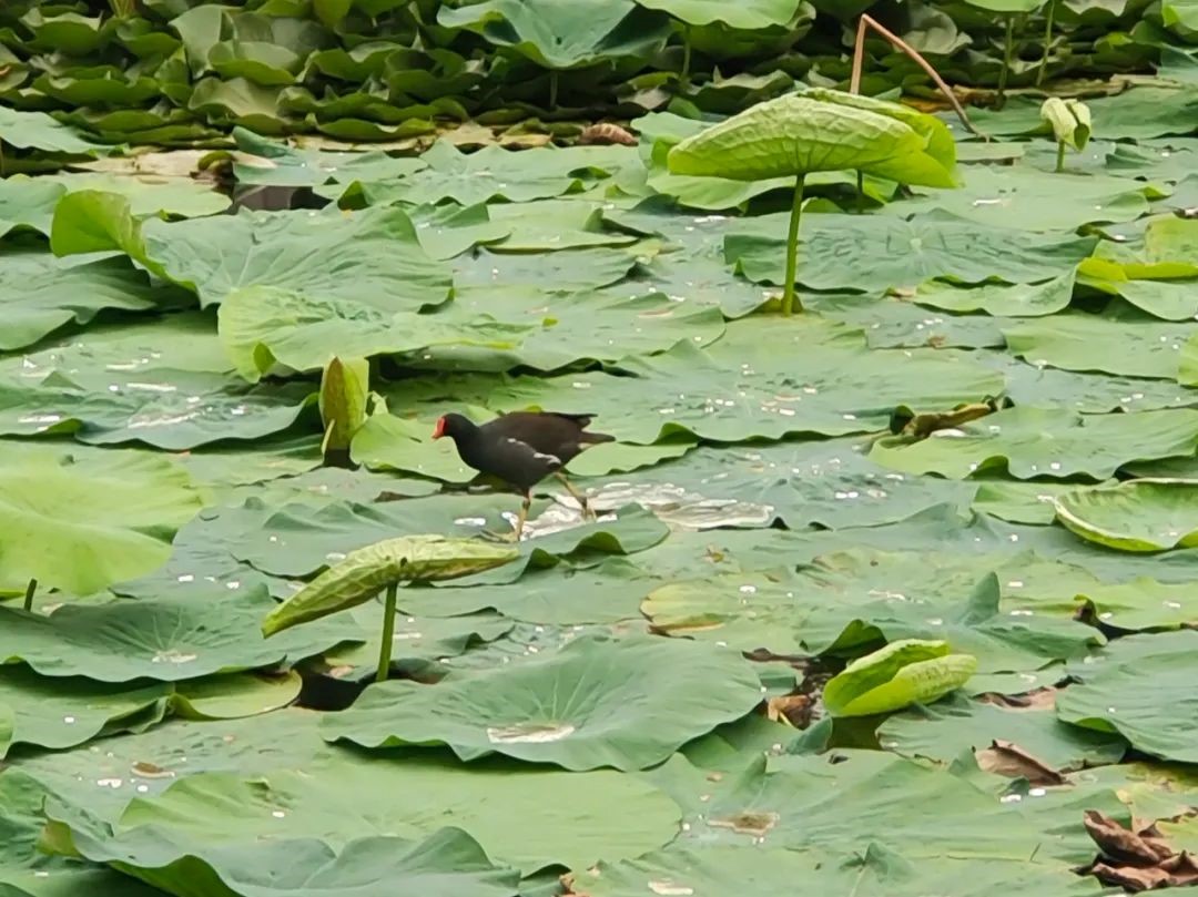 精細(xì)管養(yǎng):織就湖面生態(tài)錦緞。“一日六巡兩清” 是養(yǎng)護(hù)人員養(yǎng)護(hù)日志里的工作準(zhǔn)則。每天9點(diǎn)前,養(yǎng)護(hù)人員就會(huì)駕駛打撈船完成第一次湖面漂浮物清理,到了15點(diǎn)還會(huì)進(jìn)行第二次復(fù)檢,力求讓落葉、雜物打撈干凈。通過優(yōu)化水體循環(huán)系統(tǒng),湖內(nèi)已形成"荷花—微生物—水鳥"的微型生態(tài)鏈:荷花根系固定淤泥、凈化水質(zhì),為魚蝦提供庇護(hù);水草適度生長(zhǎng)為鳥類提供天然食物,鳥兒橘紅色腳掌劃開水面的畫面,已成荷塘靈動(dòng)一景。