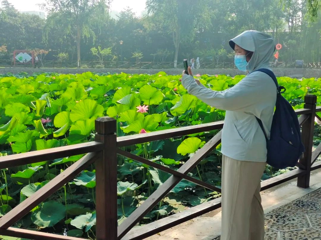 靜待盛綻:共盼千朵荷香滿園。此刻的公園荷塘,雖暫是"小荷才露尖尖角"的嬌羞模樣,卻已蘊(yùn)藏著盛夏"接天蓮葉無窮碧"的勃勃生機(jī)。往年,20余畝荷葉美景讓人流連忘返:碧波之上,蓮葉如蓋,層層疊疊鋪向遠(yuǎn)方,織就一湖翠色錦緞;千朵荷花競(jìng)相綻放,粉白嬌妍,亭亭玉立,恰似仙子凌波;微風(fēng)過處,荷香浮動(dòng),彌漫了整個(gè)湖畔。身著漢服的姑娘們,手執(zhí)團(tuán)扇,巧笑嫣然,在荷塘邊、曲橋上留下衣袂飄飄的倩影,人與花相映成趣。環(huán)湖步道上,游人如織,攝影快門聲此起彼伏。更有孩童們指著盛開的荷花興奮不已,老人們則在樹蔭下?lián)u著扇子,笑看這滿塘的熱鬧與生機(jī)。待今年粉白花瓣全然舒展,六片花盞托著金盤玉蕊,醉人的荷香將再次漫溢環(huán)湖步道。