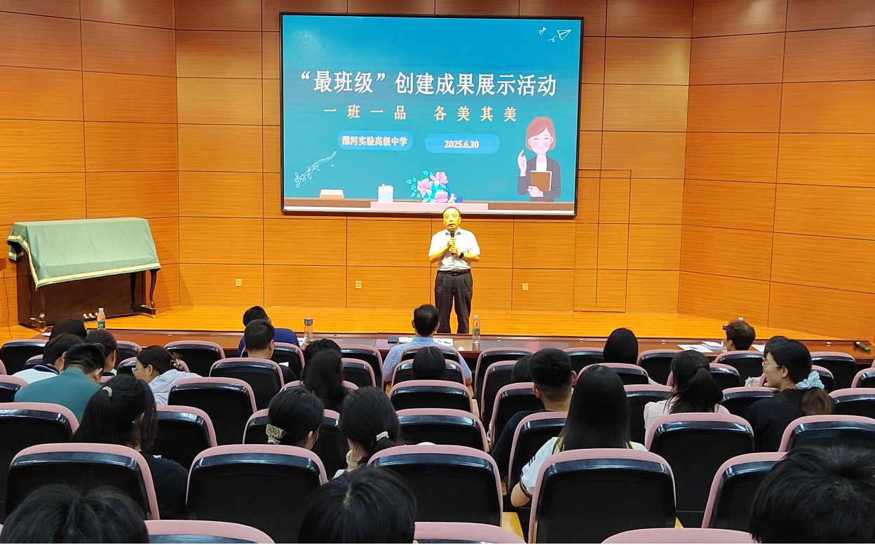 為深入踐行“三全育人”理念,全面展示“最班級”創(chuàng)建成效,構(gòu)建特色鮮明的班級文化生態(tài),漯河實(shí)驗(yàn)高級中學(xué)于2025年6月29日至30日在學(xué)校報(bào)告廳成功舉辦2024-2025學(xué)年下學(xué)期“最班級”創(chuàng)建成果展示活動。高一、高二年級全體班級參與了此次展示,學(xué)校領(lǐng)導(dǎo)及中層干部組成評委團(tuán),政教處主任白金全主持活動。