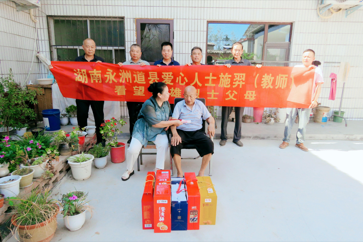 在八一建軍節(jié)即將來臨之際,7月29日下午,湖南省永州市道縣退休女教師、愛心人士施羿,為全國一級“戰(zhàn)斗英雄”李海欣烈士的父親李銀秀贈(zèng)送了2000元的慰問金,祝英雄的父親八一建軍節(jié)快樂!身體健康!家庭幸福!