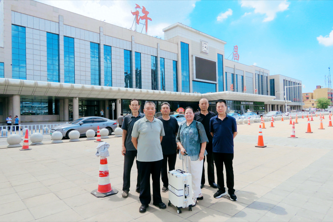 圖為2025年7月29日下午2點(diǎn)30分,湖南省永州市道縣退休女教師\愛心人士施羿與戰(zhàn)友們在許昌市火車站合影留念。