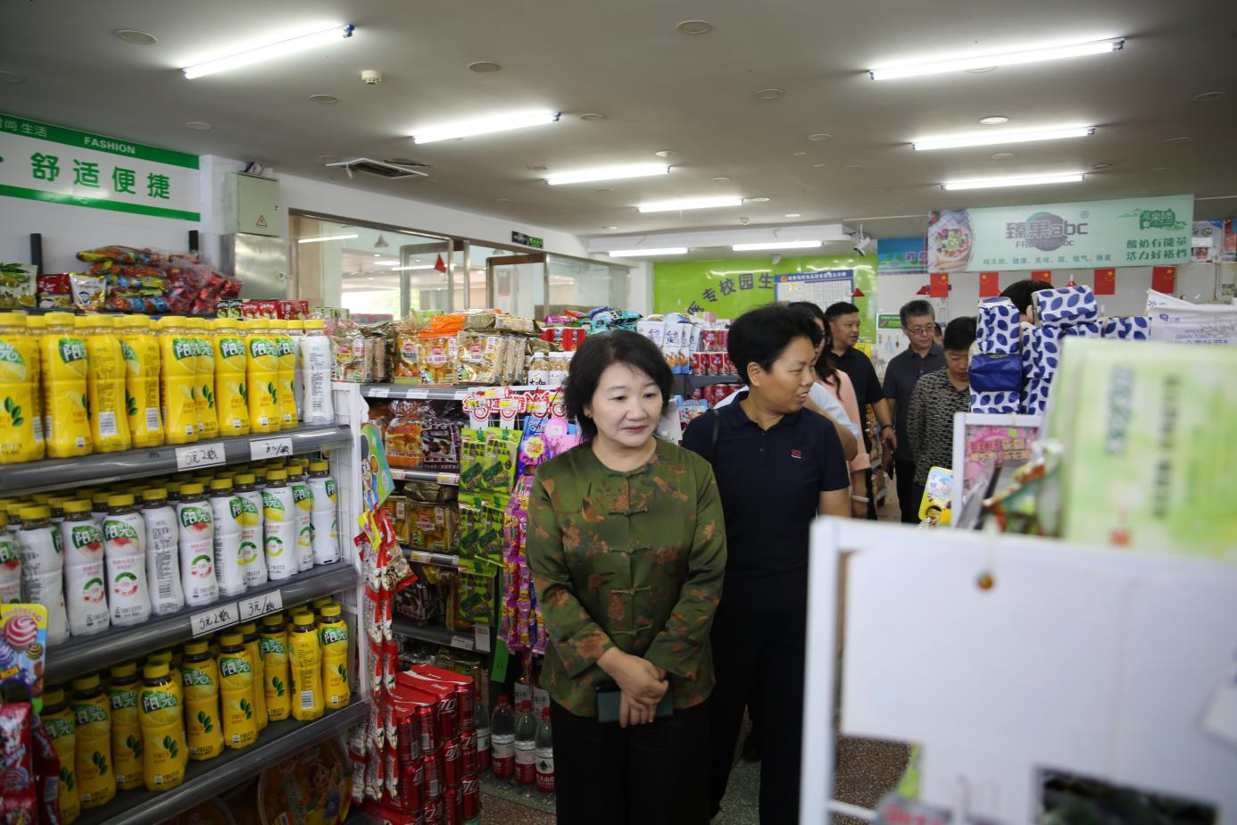 校長張祎捷在超市檢查商品供應(yīng)等情況