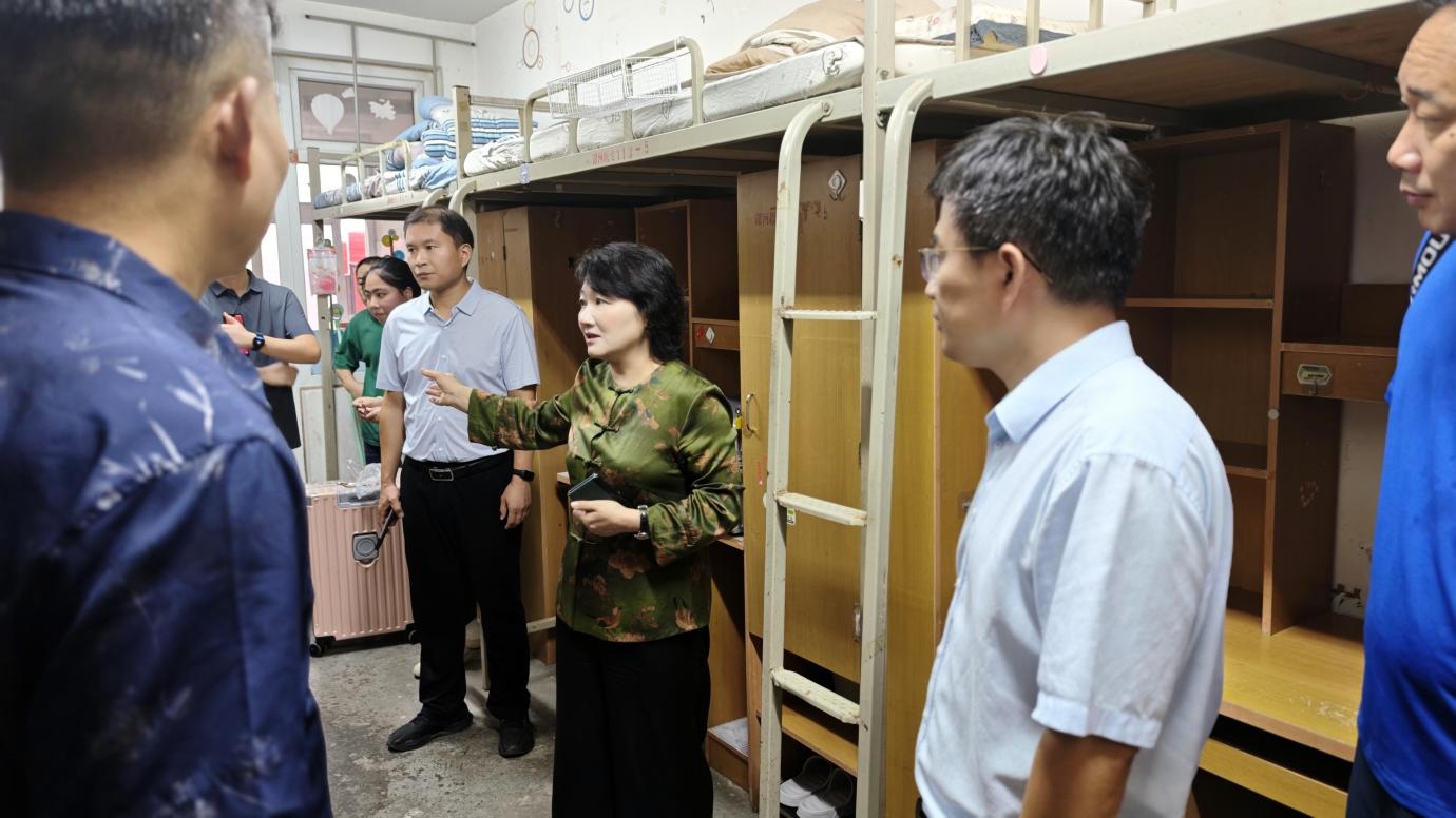 隨后,張祎捷一行走訪了源匯校區(qū)臨床醫(yī)學(xué)院、口腔醫(yī)學(xué)院、護(hù)理學(xué)院、藥學(xué)院、中醫(yī)學(xué)院、醫(yī)技學(xué)院迎新點(diǎn),詳細(xì)了解報(bào)到情況,仔細(xì)詢問新生報(bào)到流程,注冊(cè)進(jìn)度和志愿服務(wù)安排。每到一處,她都與新生、家長及工作人員深入交流。在學(xué)生宿舍區(qū),她重點(diǎn)查看了生活服務(wù)保障措施,認(rèn)真傾聽學(xué)生初入校園的感受,鼓勵(lì)他們積極適應(yīng)新環(huán)境、融入大集體,盡快以飽滿的狀態(tài)投入大學(xué)生活,并感謝家長對(duì)學(xué)校的信任與托付。此外,張祎捷一行還前往校區(qū)食堂、超市、志愿服務(wù)點(diǎn),檢查餐飲衛(wèi)生、商品供應(yīng)、志愿服務(wù)等情況,確保新生在校生活需求得到全方位保障。