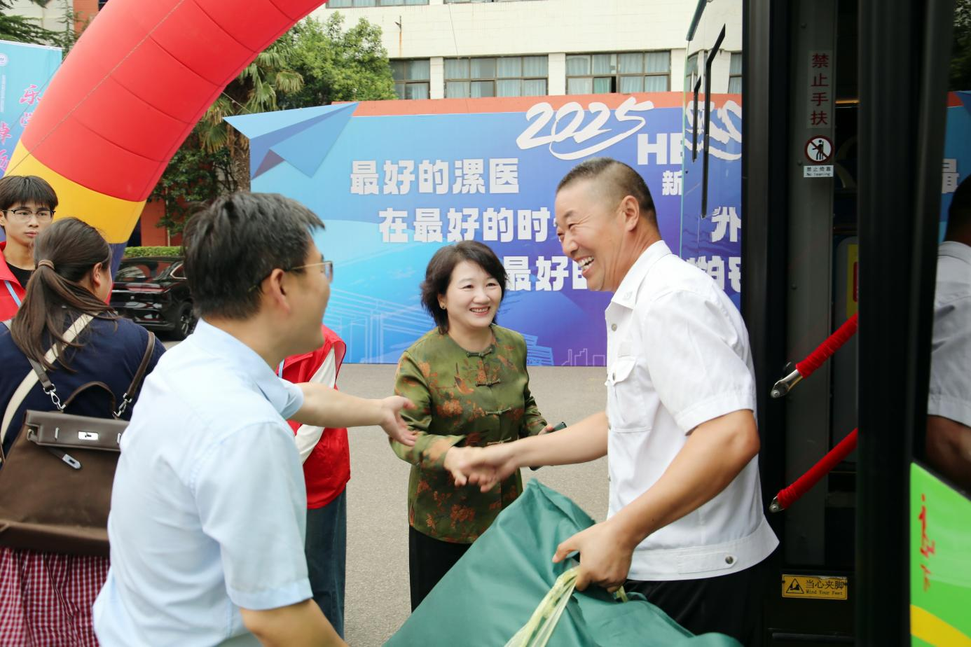 青春乘秋風(fēng),壯志啟新程。8月30日,漯河醫(yī)專迎新工作全面拉開帷幕,上午8時(shí),校長張祎捷、校黨委副書記邊曉峰分別帶領(lǐng)校領(lǐng)導(dǎo)班子深入源匯校區(qū)、召陵校區(qū)迎新現(xiàn)場(chǎng),迎接第一輛駛?cè)胄@的新生班車,親切看望2025級(jí)新生及家長,并慰問一線工作人員和志愿者。