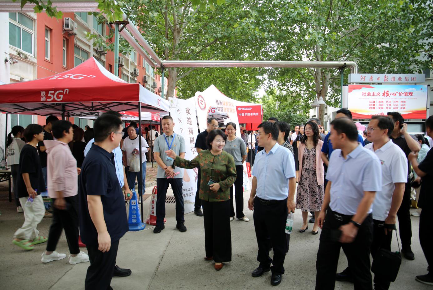 在召陵校區(qū)迎新點(diǎn),校黨委副書記邊曉峰聚焦迎新關(guān)鍵環(huán)節(jié),與現(xiàn)場(chǎng)工作人員深入交流。他重點(diǎn)詢問公共衛(wèi)生學(xué)院新生報(bào)到流程優(yōu)化情況、實(shí)時(shí)報(bào)到數(shù)據(jù)統(tǒng)計(jì)、宿舍分配及入住保障措施,細(xì)致了解各學(xué)院在迎新工作中的創(chuàng)新做法,對(duì)貼近新生實(shí)際需求的迎新服務(wù)給予充分肯定。在志愿服務(wù)站,校領(lǐng)導(dǎo)與志愿工作者親切交談,并對(duì)大家的辛勤付出表示衷心感謝。