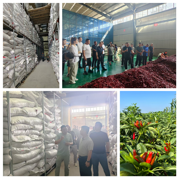第一站實(shí)地參觀(guān)“子彈頭”、“三櫻椒”品種辣椒的生長(zhǎng)情況,學(xué)習(xí)“麥椒套種”種植技巧,詢(xún)問(wèn)專(zhuān)家種植模式、病蟲(chóng)害防治和畝產(chǎn)情況。王崗鎮(zhèn)技術(shù)人員毫無(wú)保留地分享了田間管理的關(guān)鍵細(xì)節(jié)與多年積累的實(shí)用經(jīng)驗(yàn),通過(guò)細(xì)致觀(guān)摩和現(xiàn)場(chǎng)講解,系統(tǒng)了解了這一高效種植模式的核心環(huán)節(jié)——從精準(zhǔn)選種、科學(xué)播種、病蟲(chóng)防治到高效收獲、專(zhuān)業(yè)存儲(chǔ)及暢通銷(xiāo)售的全鏈條操作流程。第二站實(shí)地參觀(guān)了王崗鎮(zhèn)辣椒儲(chǔ)存專(zhuān)用冷庫(kù),通過(guò)查看冷庫(kù)建設(shè)分區(qū)和分揀情況,詳細(xì)了解辣椒打包存儲(chǔ)技巧和市場(chǎng)托管銷(xiāo)售等關(guān)鍵環(huán)節(jié),為種植大戶(hù)安心發(fā)展種植注入“強(qiáng)心劑”。