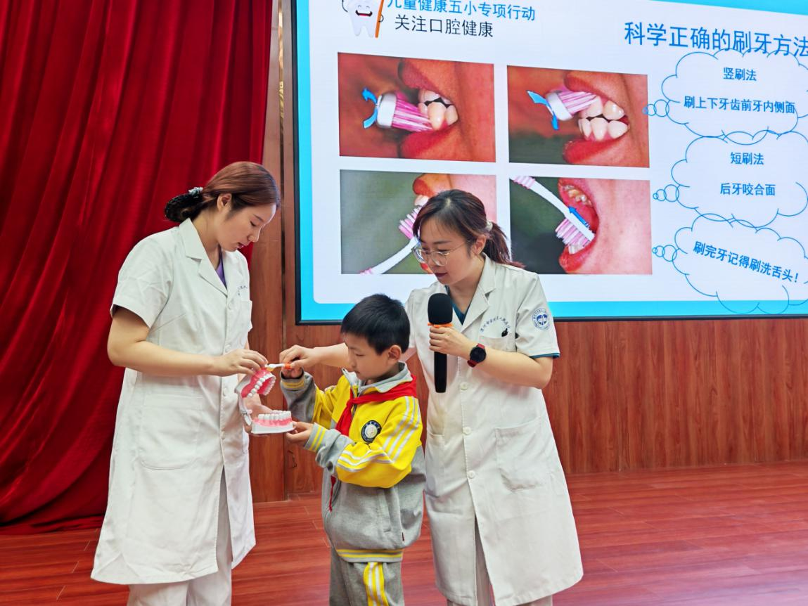 活動(dòng)中,召陵區(qū)人民醫(yī)院兒童保健科楊柳醫(yī)生為孩子們帶來(lái)了一節(jié)生動(dòng)有趣的健康知識(shí)課。課堂上,同學(xué)們?cè)跅钺t(yī)生的引導(dǎo)下積極互動(dòng),尤其是在刷牙規(guī)范講解環(huán)節(jié),少先隊(duì)員們踴躍參與實(shí)操演示,在趣味學(xué)習(xí)中樹(shù)立健康意識(shí)。這堂課程不僅傳遞了健康知識(shí),更將黨對(duì)少年兒童的關(guān)懷具象為可感可知的教育服務(wù),讓紅色初心在健康育人中落地生根。